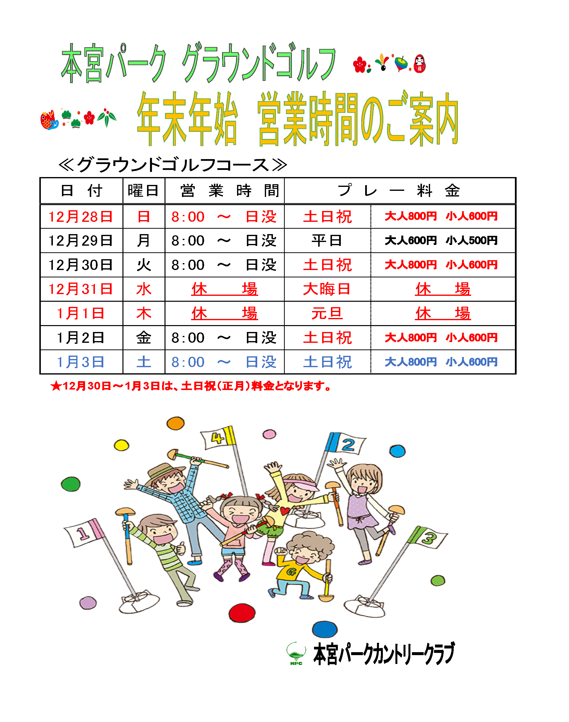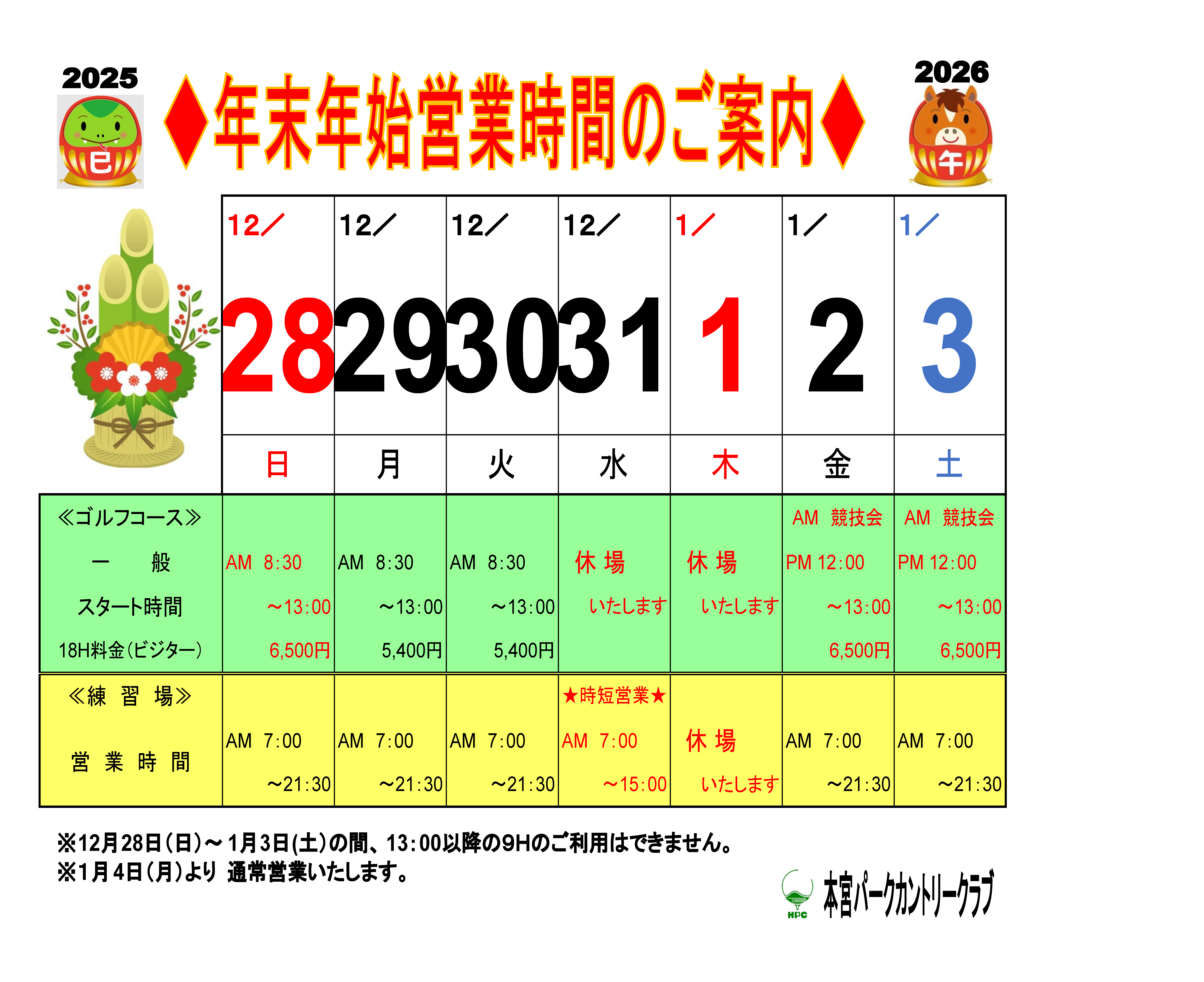 ゴルフ場/練習場の年末年始の営業時間